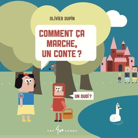 Dans ce nouvel album, Olivier Dupin répond à la grande question : «Comment ça marche, un conte?» Il vulgarise pour les plus jeunes les notions de base du conte classique. Nulle théorie complexe ici, mais plutôt de l’humour à la tonne. Chaque notion est accompagnée de quatre cases illustrées à la manière d’une bande dessinée. Ces quatre cases mettent chacune en scène un conte : Le Petit Chaperon rouge, Le Petit Poucet, Le Vilain petit canard et Blanche-Neige. Ainsi, les notions s’enchainent au fil des pages, alors que le récit des quatre histoires avance. À cette structure ingénieuse s’ajoute le ton quelque peu grinçant choisi par Olivier Dupin qui propulse les quatre contes dans la modernité.